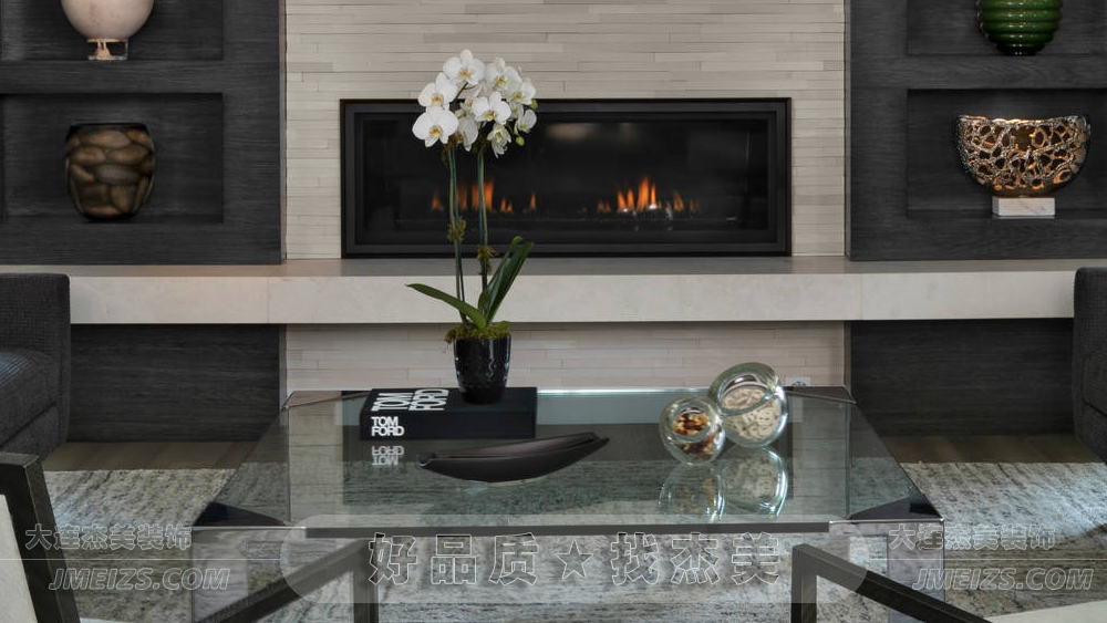石材壁爐帶來質(zhì)感,中式裝飾茶幾與歐式沙發(fā)形成多元文化交融。裝飾枝形吊盆與燈飾點(diǎn)綴其間