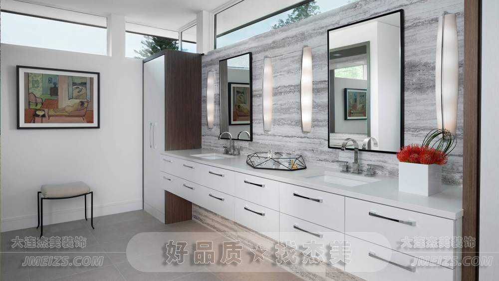 注重品質(zhì)提升的極簡洗漱間設(shè)計(jì)案例。通過色彩空間處理與高品質(zhì)選材應(yīng)用,打造出風(fēng)格簡約而高端的洗護(hù)空間。