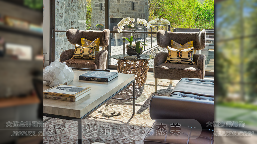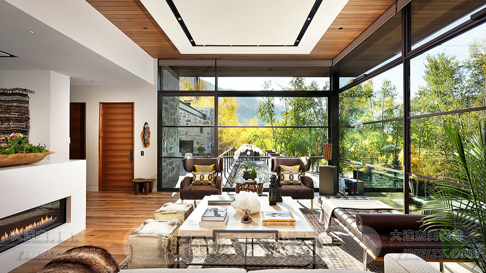 這個客廳是一個完美的結(jié)合了現(xiàn)代設(shè)計和大自然的空間。