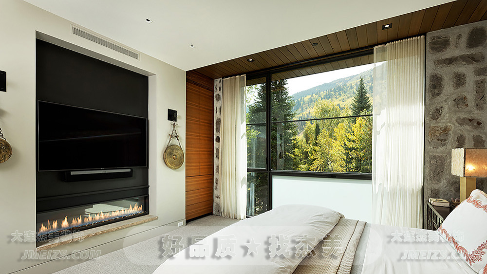 大片落地窗將室外的山野風光一覽無遺地展現(xiàn)在眼前,讓人感覺仿佛自己就在大自然之中。