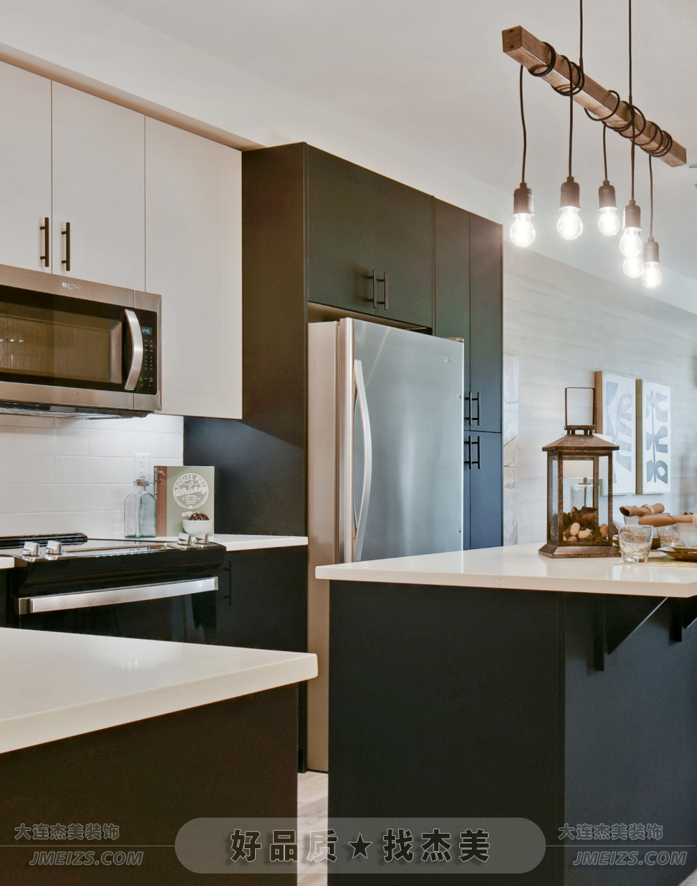 而黑色的櫥柜則展現(xiàn)了一種現(xiàn)代和優(yōu)雅的美感,為整個(gè)空間增添了一份高級(jí)感。