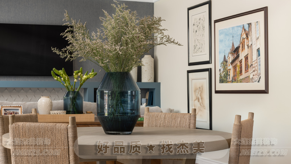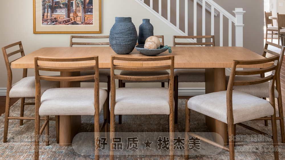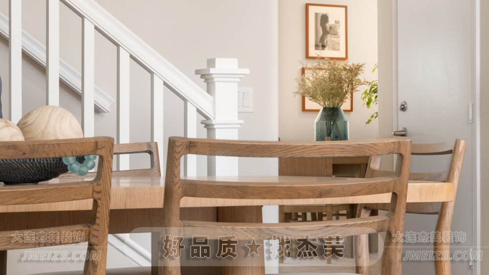 餐廳中的餐桌、餐椅和餐具柜,都采用了實木材料。這種原木的質(zhì)感,不僅增添了一份自然與溫馨,還為整個空間帶來了一種原始與質(zhì)樸的氛圍。