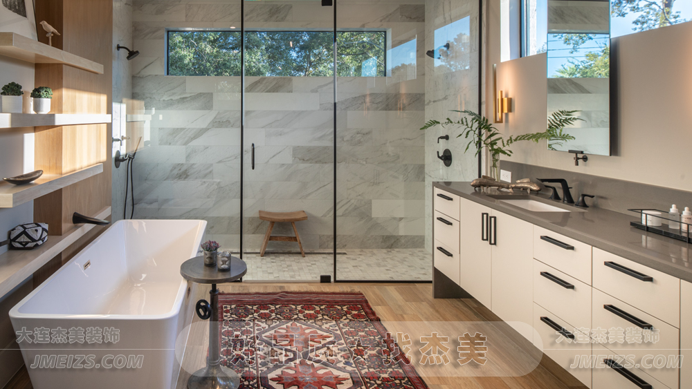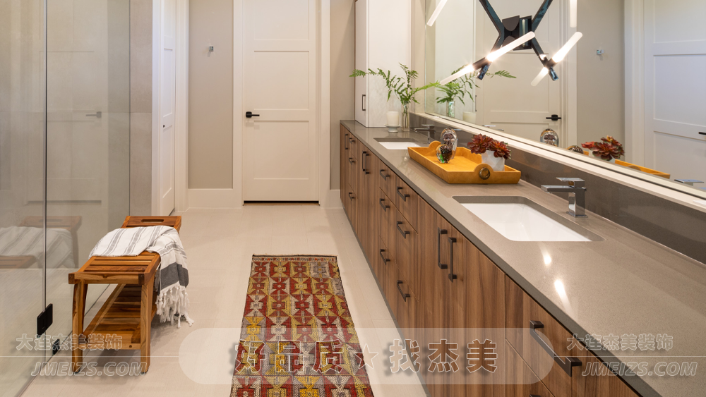 整個浴室的設計,都體現(xiàn)了現(xiàn)代美學的理念。無論是簡約的家具選擇,還是溫暖的色調,都展現(xiàn)了一種簡約、現(xiàn)代、自然的美學理念。在這里,沐浴變成了一種與自然親近的體驗,體驗現(xiàn)代生活的舒適與便捷。