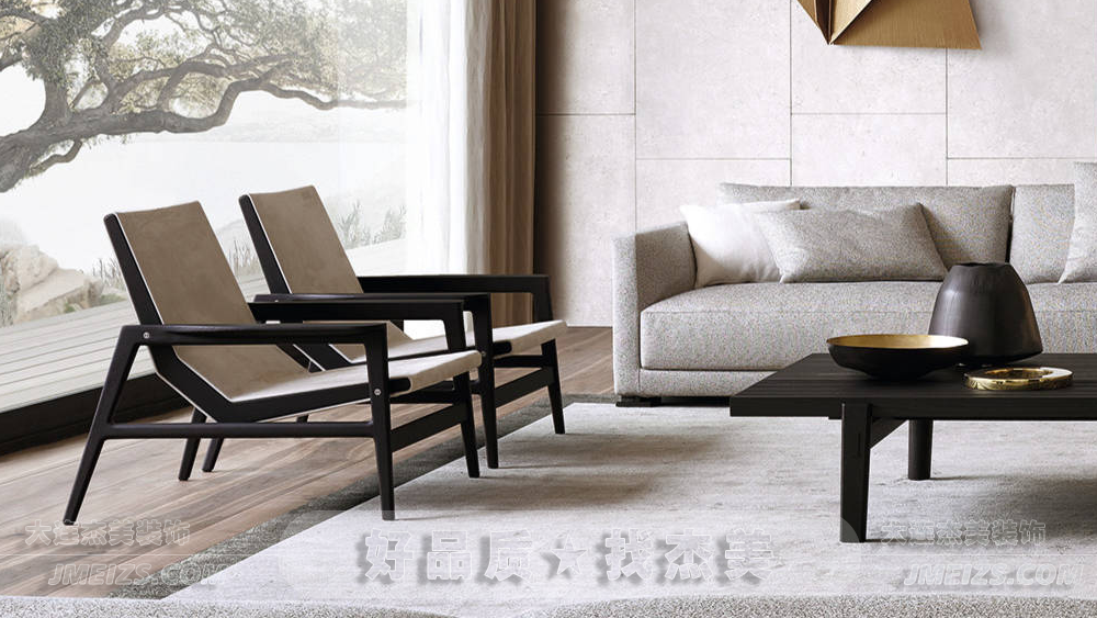 沙發(fā)的設(shè)計(jì)簡約而不簡單,線條流暢,尺度寬敞,