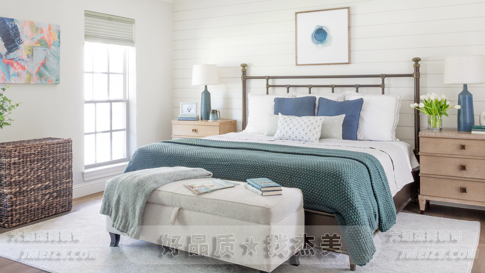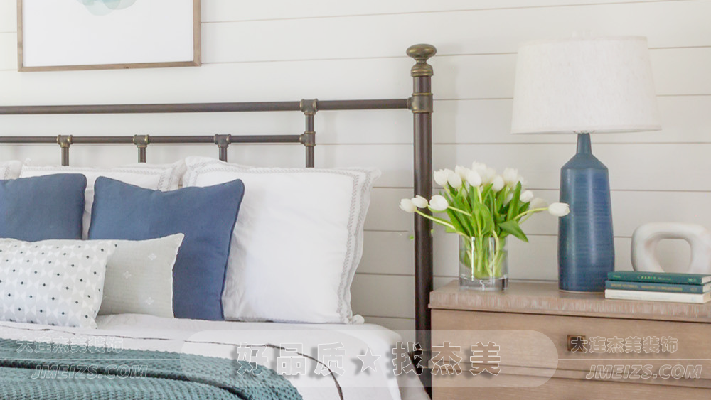 臥室中的色彩,以海洋藍為主導(dǎo),溫和又深邃。