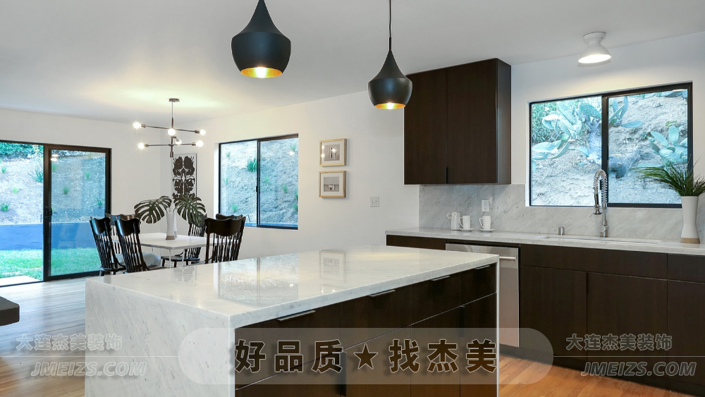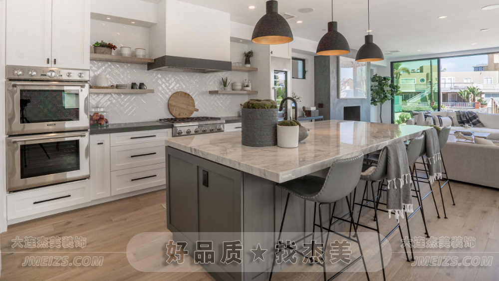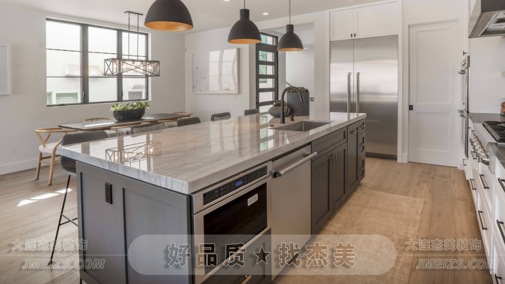 大連裝修之廚房設(shè)計(jì)方案d:黑白灰/對(duì)比與層次/L型開放式廚房設(shè)計(jì)