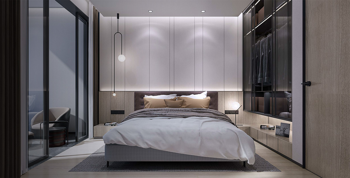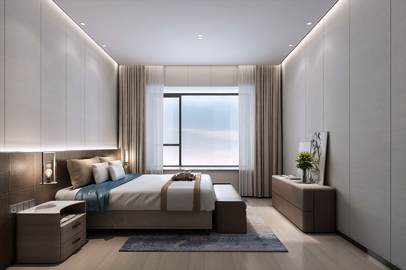 臥室也是非常隱秘的場所,窗簾必不可少。建議布簾+紗簾雙層形式,遮光、保護(hù)隱私的效果更好。
